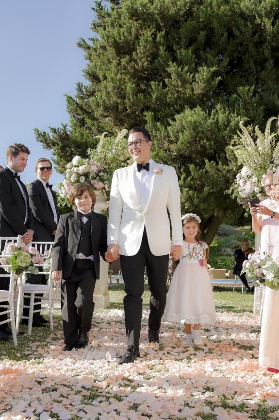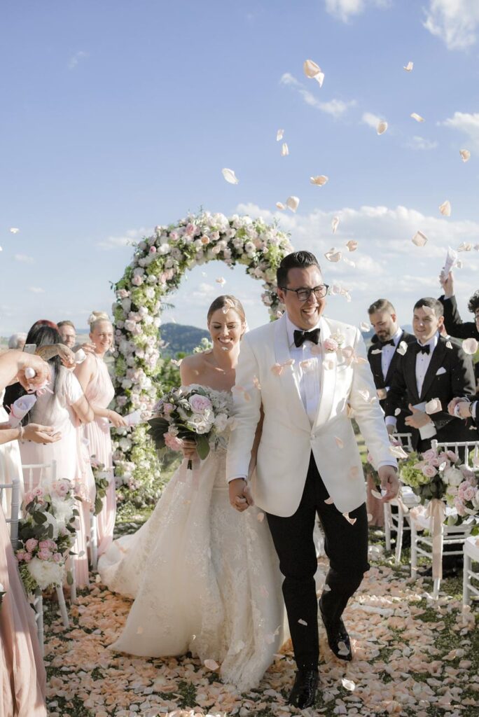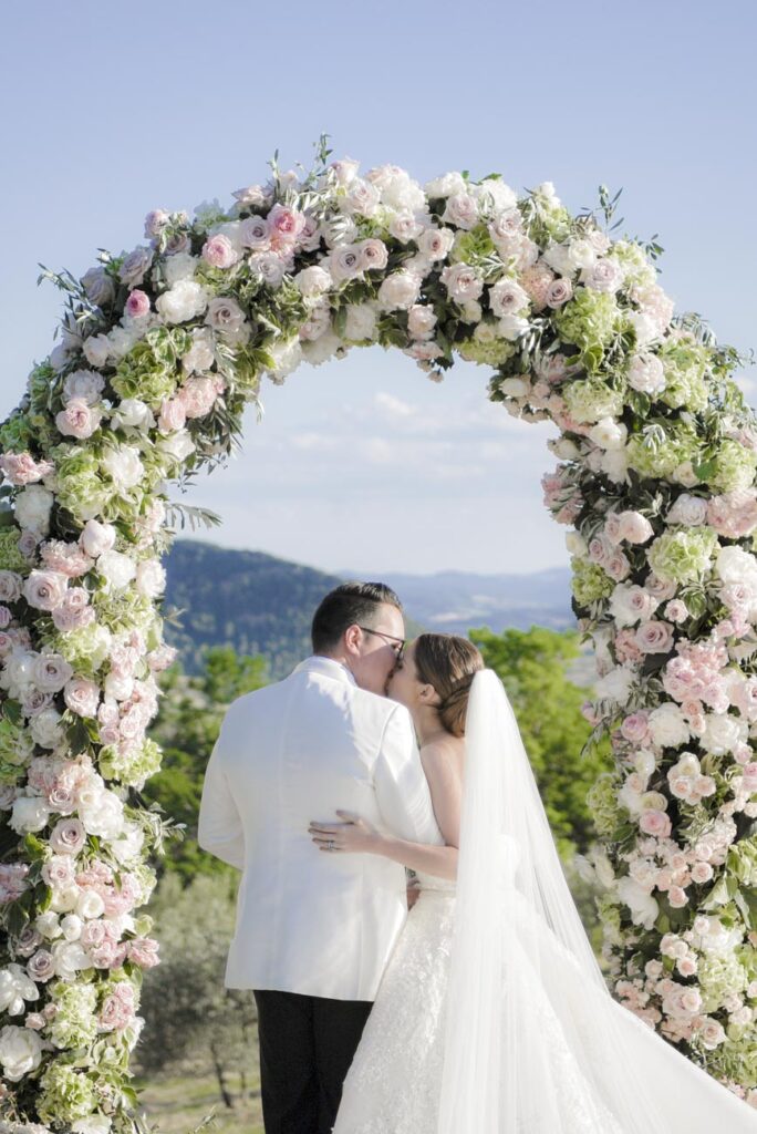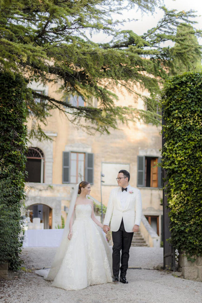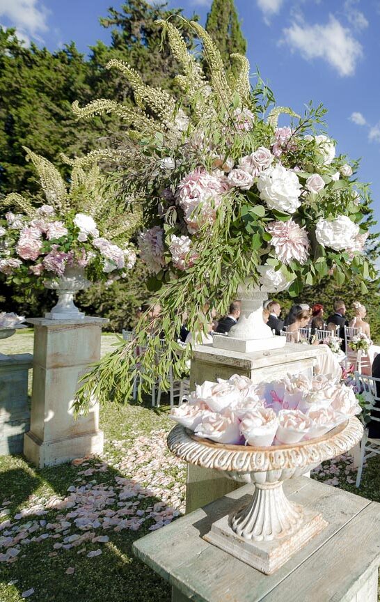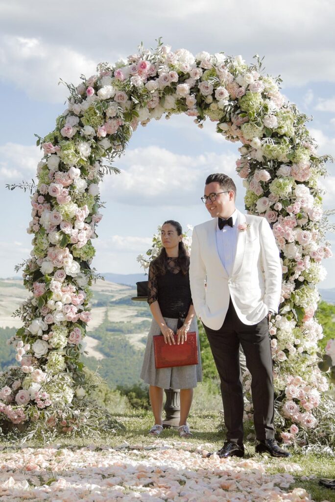The symbolic ceremony took place in the lower garden of the venue with a view opening to the superb Tuscan country side with its unique summer colours.