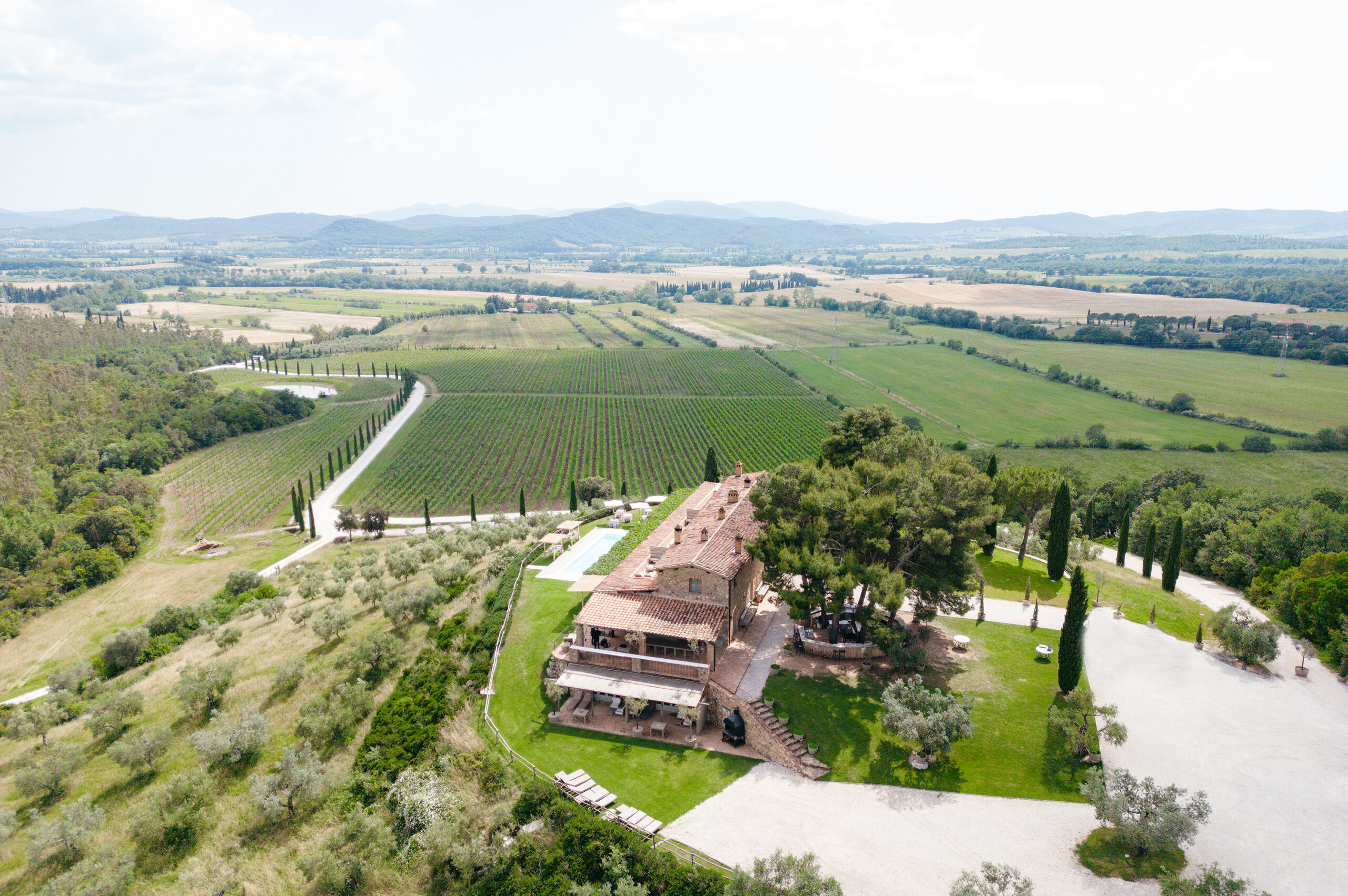 The beautiful Conti di San Bonifacio  in the countryside of Tuscany neighbour to Gavorrano, in the stunning region of the Maremma. This luxury Villa Hotel Wine Resort, owned, created and styled by the Count & Countess Conti di San Bonifacio is perched on a hill at the end of an impressive cypress tree lined gravel driveway. This small luxury Villa hotel is intimate, tastefully furnished, with an incredible saltwater swimming pool terrace overlooking a captivating vista.