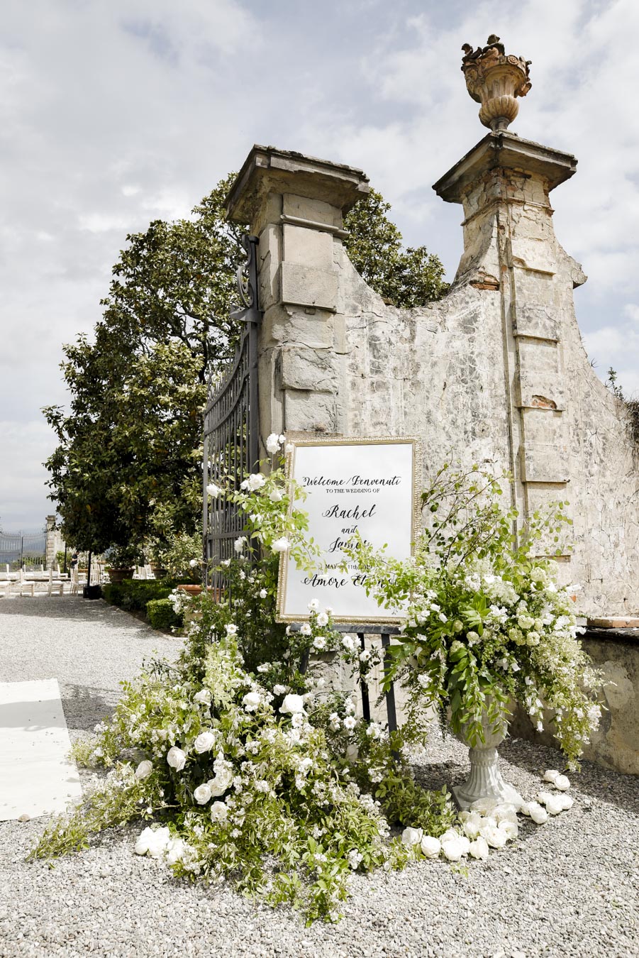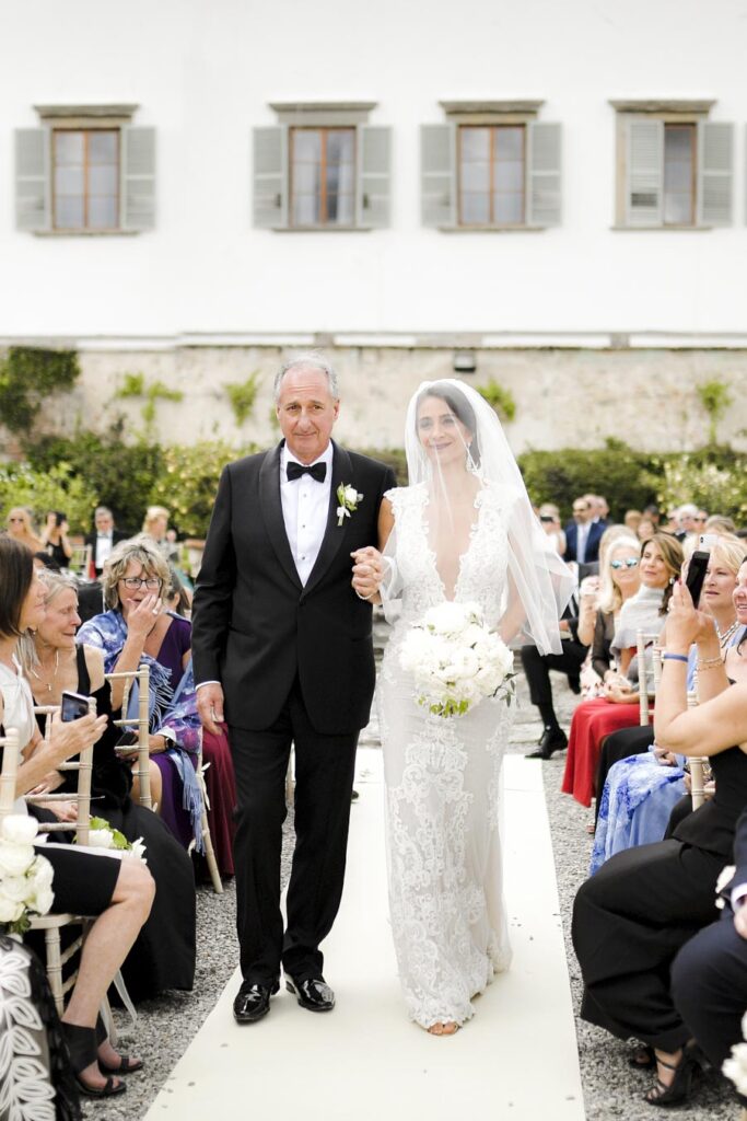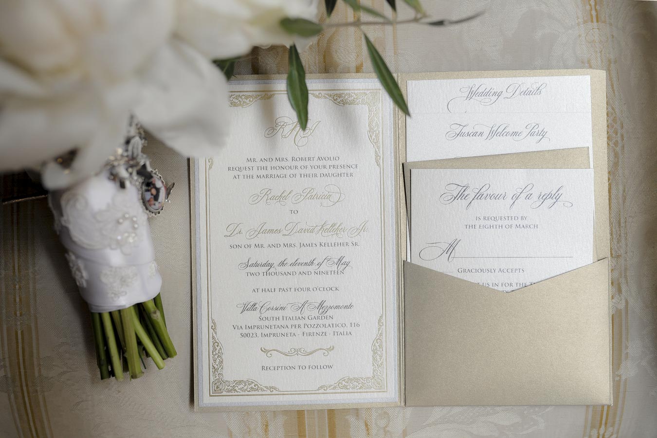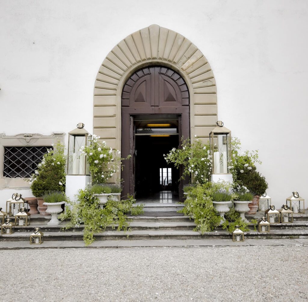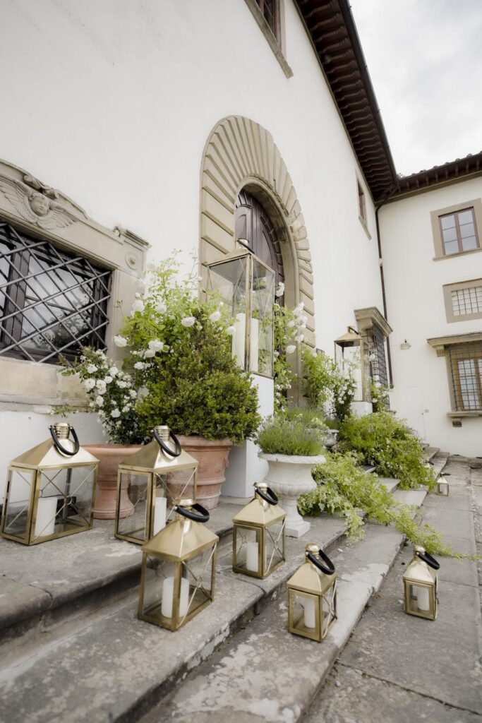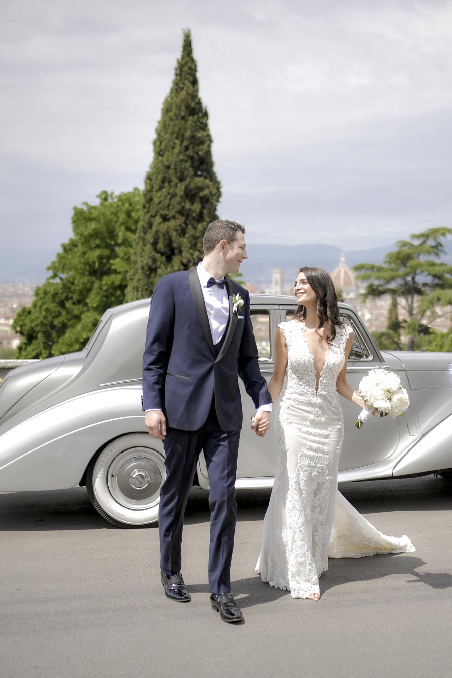 Florence is one of the most romantic cities in Italy, an ideal destination for couples in love and Rachel & James they are . Rachel got ready in an exclusive apartment in the center of Florence while James at the grand hotel Minerva in Piazza Santa Maria Novella. They took their first look on the San Niccolò bridge with the Ponte Vecchio in the background accompanied by their parents and then continue with the shooting at piazzale Michelangelo . On board their Bentley they headed to Villa Corsini, location chosen by them for the ceremony. The celebrations went on all night with live music dances and fireworks