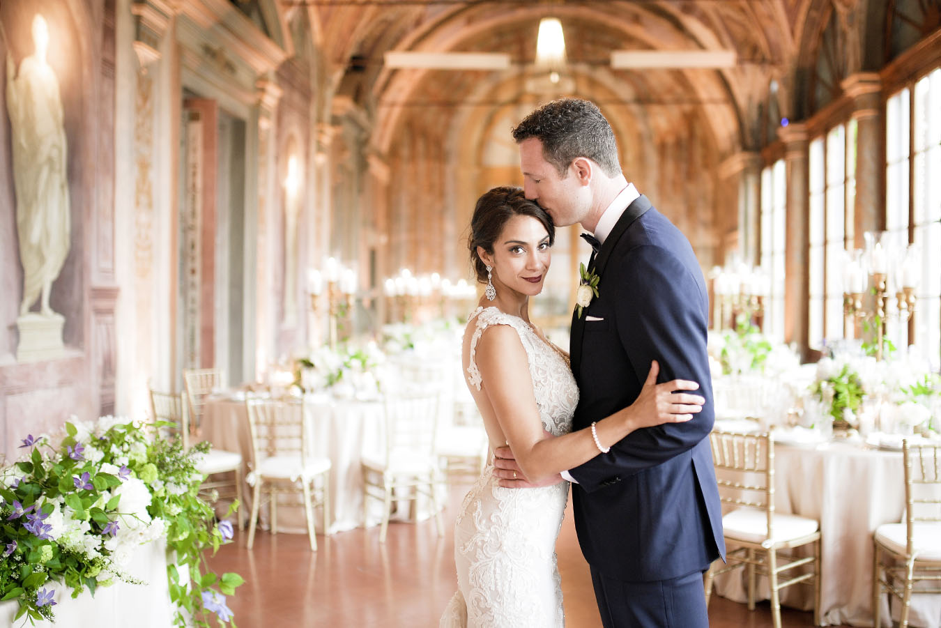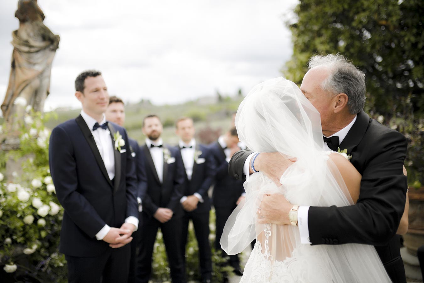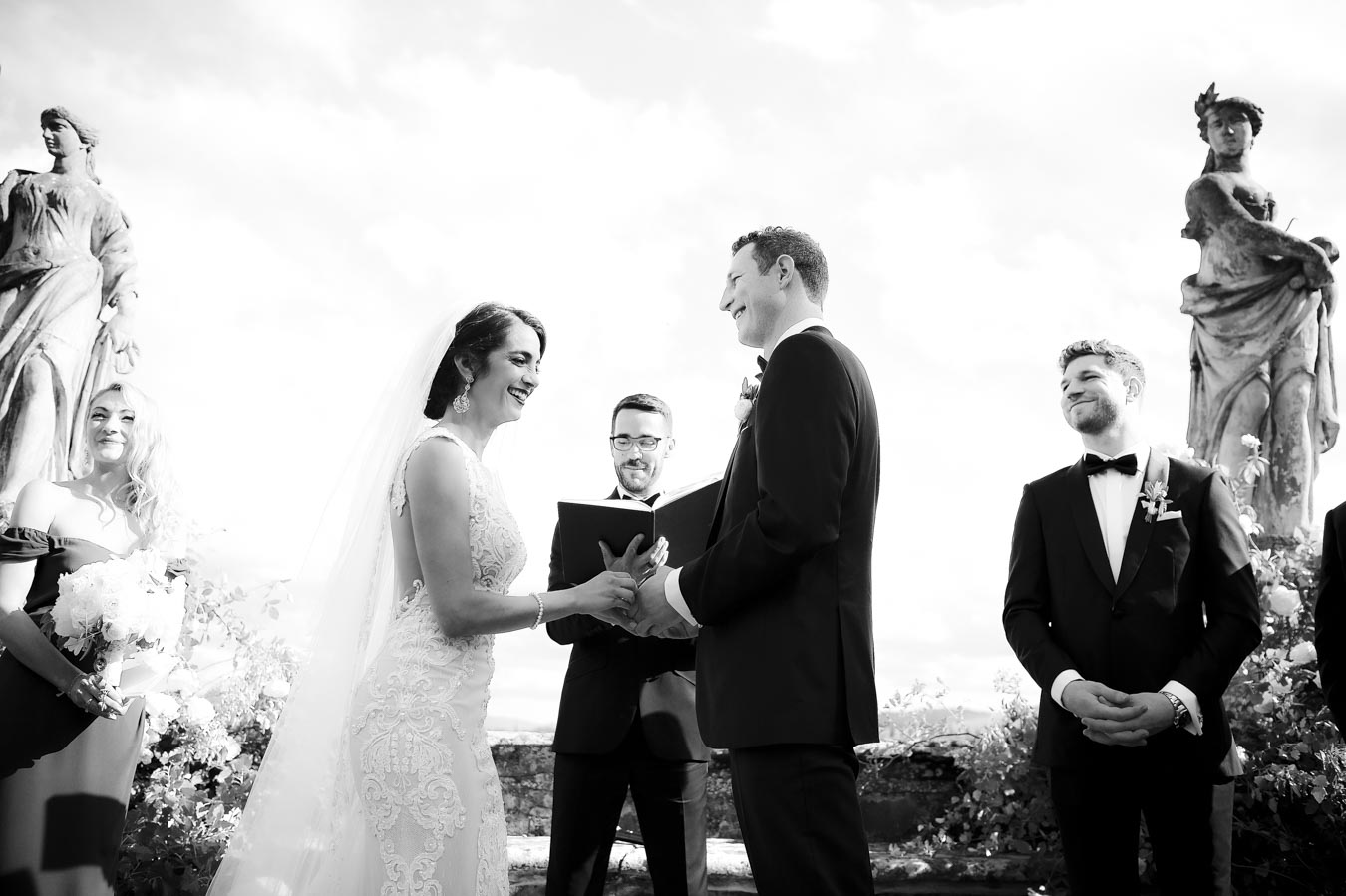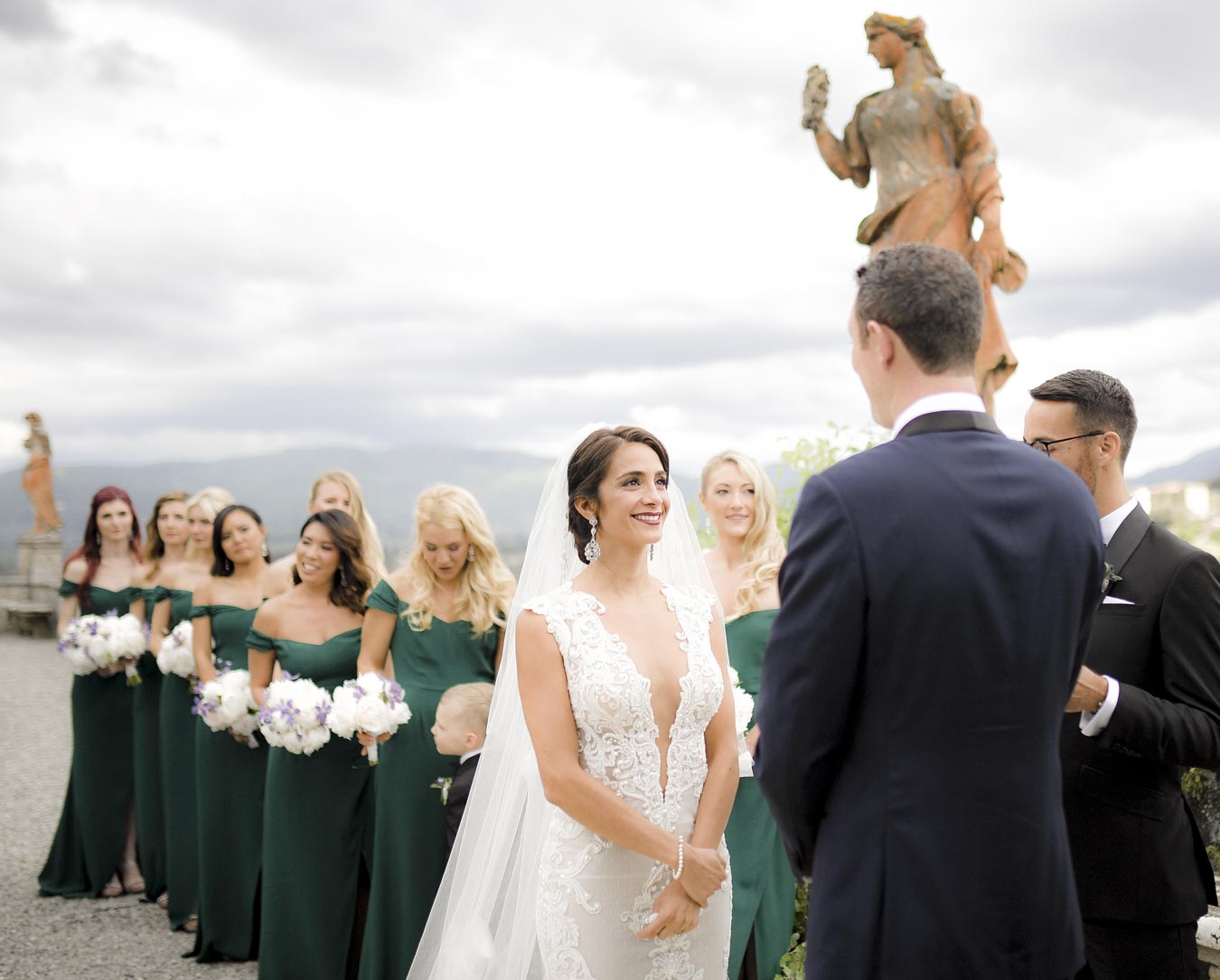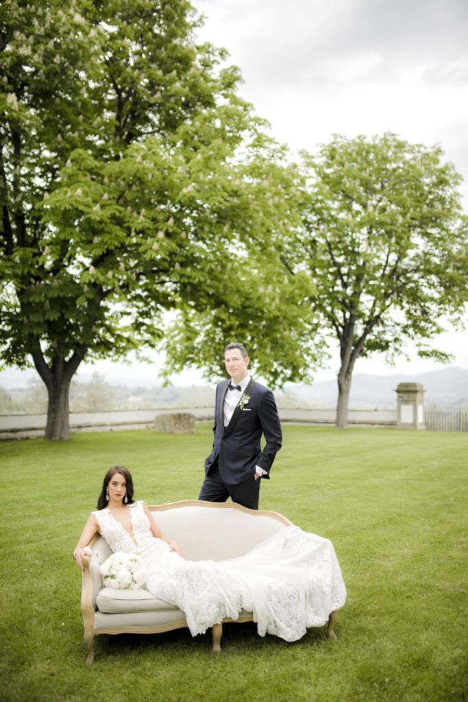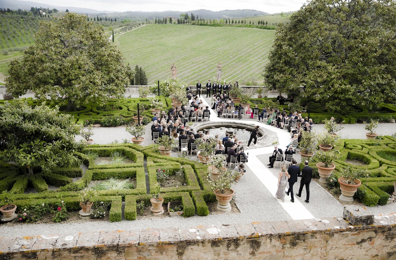 Florence is one of the most romantic cities in Italy, an ideal destination for couples in love and Rachel & James they are . Rachel got ready in an exclusive apartment in the center of Florence while James at the grand hotel Minerva in Piazza Santa Maria Novella. They took their first look on the San Niccolò bridge with the Ponte Vecchio in the background accompanied by their parents and then continue with the shooting at piazzale Michelangelo . On board their Bentley they headed to Villa Corsini, location chosen by them for the ceremony. The celebrations went on all night with live music dances and fireworks