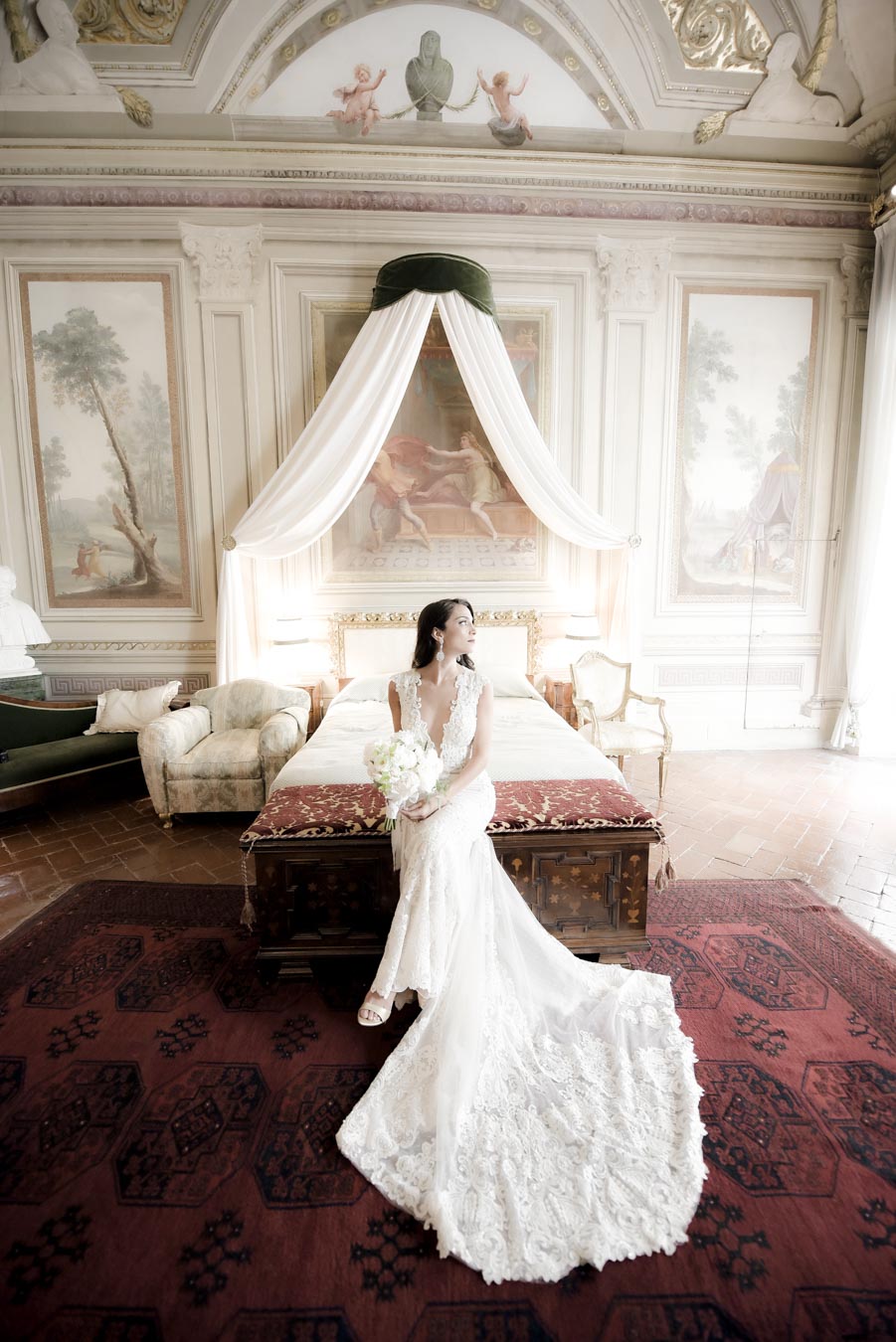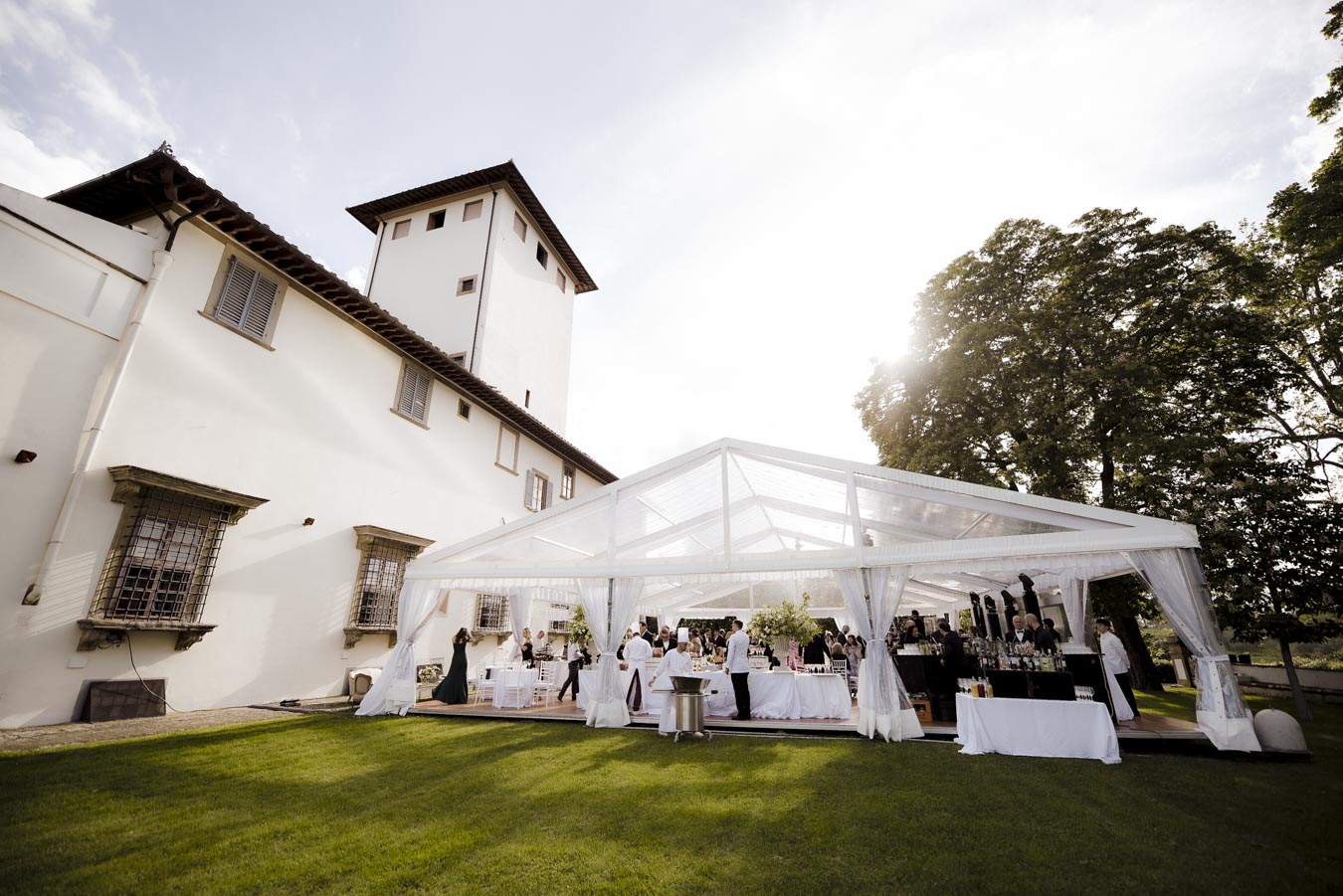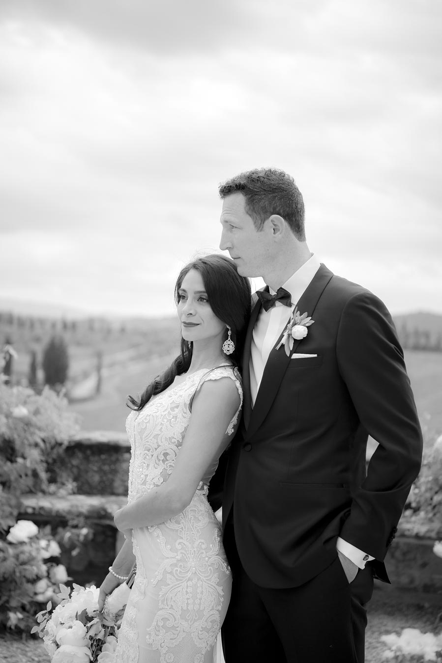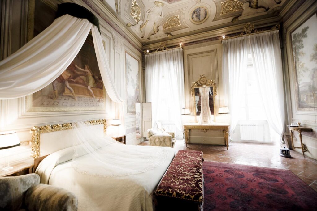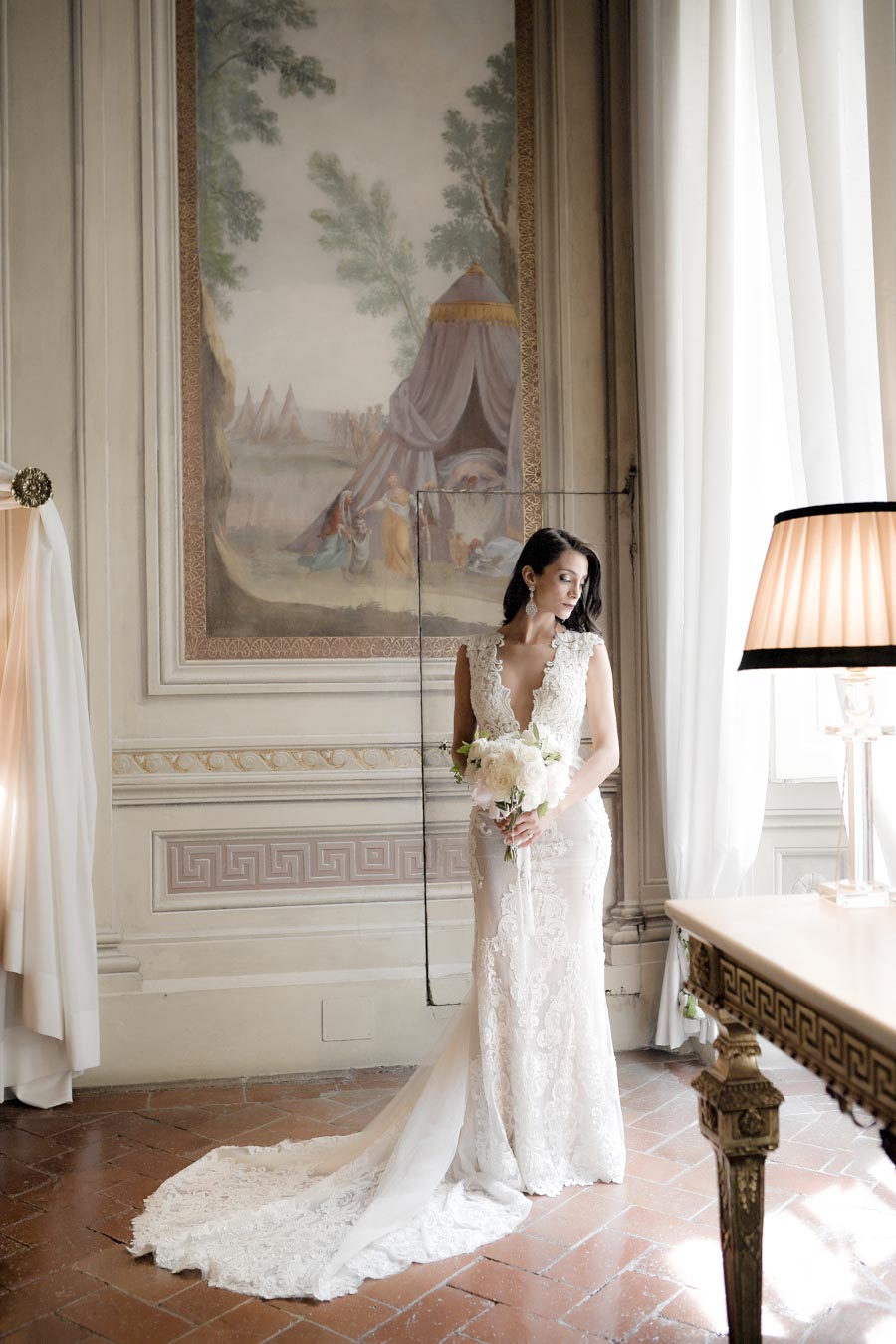 Florence is one of the most romantic cities in Italy, an ideal destination for couples in love and Rachel & James they are . Rachel got ready in an exclusive apartment in the center of Florence while James at the grand hotel Minerva in Piazza Santa Maria Novella. They took their first look on the San Niccolò bridge with the Ponte Vecchio in the background accompanied by their parents and then continue with the shooting at piazzale Michelangelo . On board their Bentley they headed to Villa Corsini, location chosen by them for the ceremony. The celebrations went on all night with live music dances and fireworks